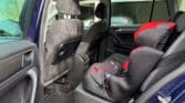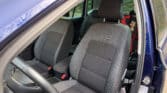Interieur : Grijze stoffen zetels met blauwe stiksels